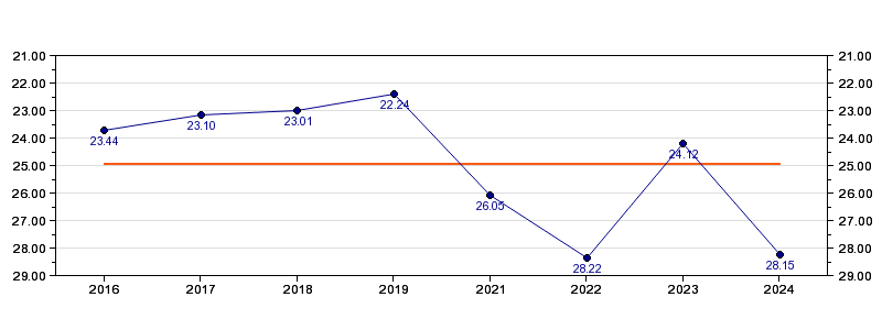 | Forrige tid | 28.15 (2024) |