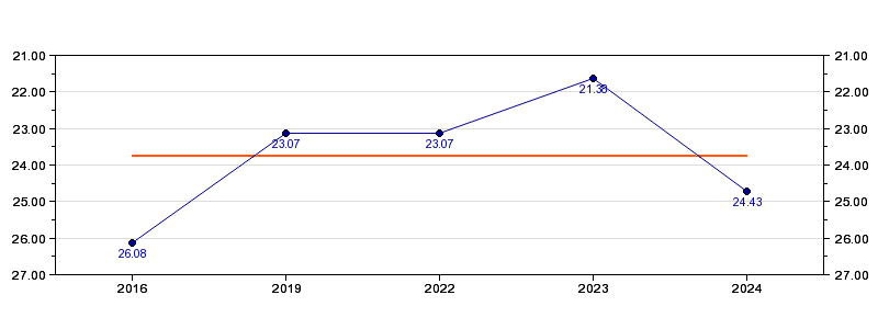 | Forrige tid | 24.43 (2024) |