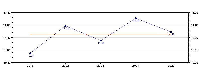 | Forrige tid | 14.17 (2025) |