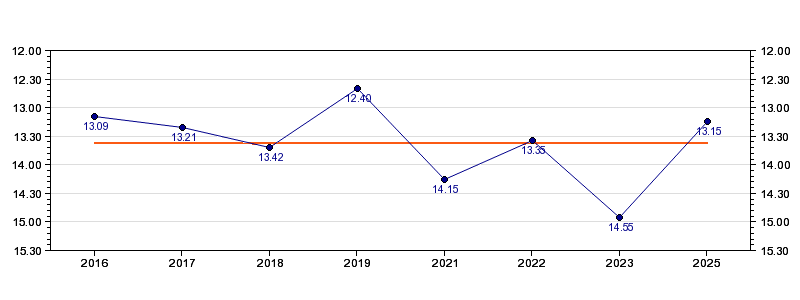 | 2025 | Kalkulator | 13:15 (1364 m/h) | 02:06 (1537 m/h, 112 %) | 06:05 (03:59, 1381 m/h, 101 %) | 11:26 (05:21, 1281 m/h, 93 %) | 13:15 (01:49, 1373 m/h, 100 %) |