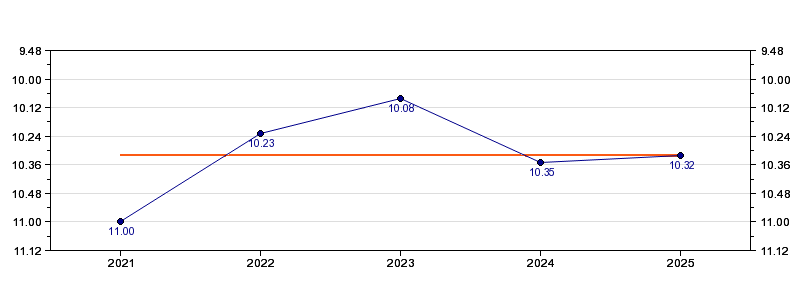 | Forrige tid | 10.32 (2025) |