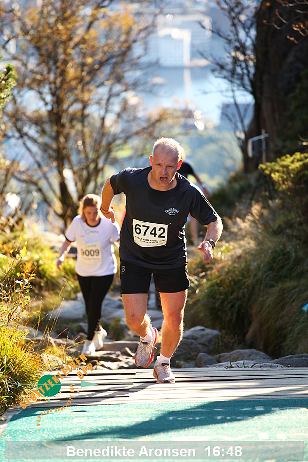 Da Thorbjørn Ludvigsen satte rekord på 7.54 i 2016 hadde han serien 95-99-95-115 og en gjennomsnittlig vertikal hastighet på 2286 meter/time. Kristin Størmer Steira hadde serien 107-96-95-107 da hun satte damerekord på 9:35 i 2013 med en gjennomsnittlig vertikal hastighet på 1884 meter/time. Til sammenligning hadde verdensrekordløpene på en vertikal kilometer (per 1/8/2014) hastighet på henholdsvis 1967 meter/time og 1630 meter/time - men da ble det altså løpt mer enn 3 ganger så langt.