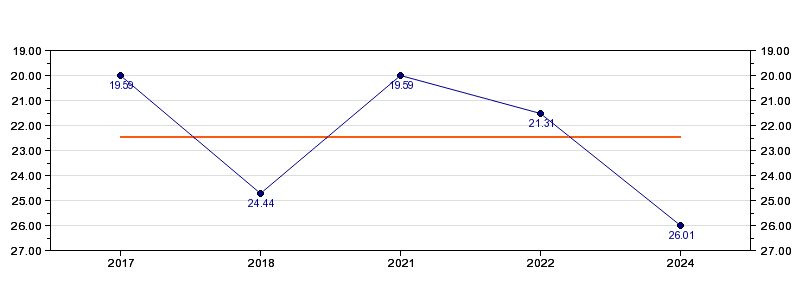 | Antall deltagelser | 5 (i perioden 2017 - 2024) |