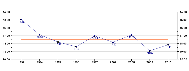 Antall deltagelser9 (i perioden 1992 - 2010)
