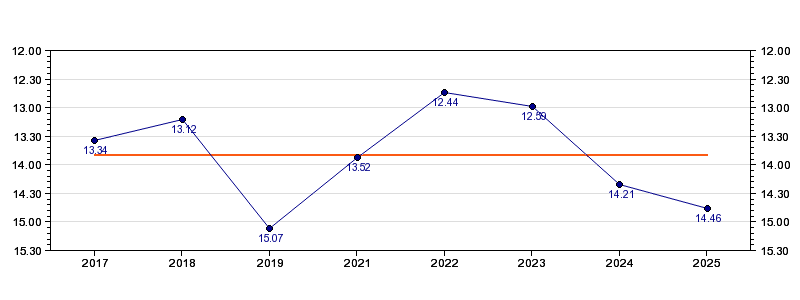 Antall deltagelser8 (i perioden 2017 - 2025)
