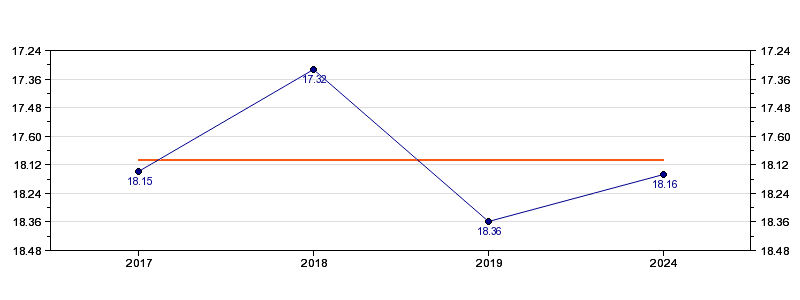| Forrige tid | 18.16 (2024) |