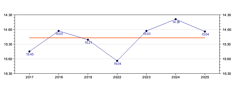 | Forrige tid | 15.04 (2025) |