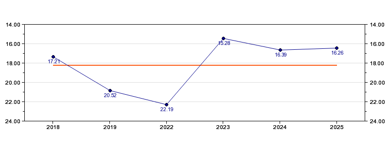 | Forrige tid | 16.26 (2025) |