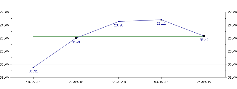 | 18.09.2018 | 30.31 | 22.09.2018 | 26.01 | 23.09.2018 | 23.28 | 03.10.2018 | 23.11 | 25.09.2019 | 25.40 |