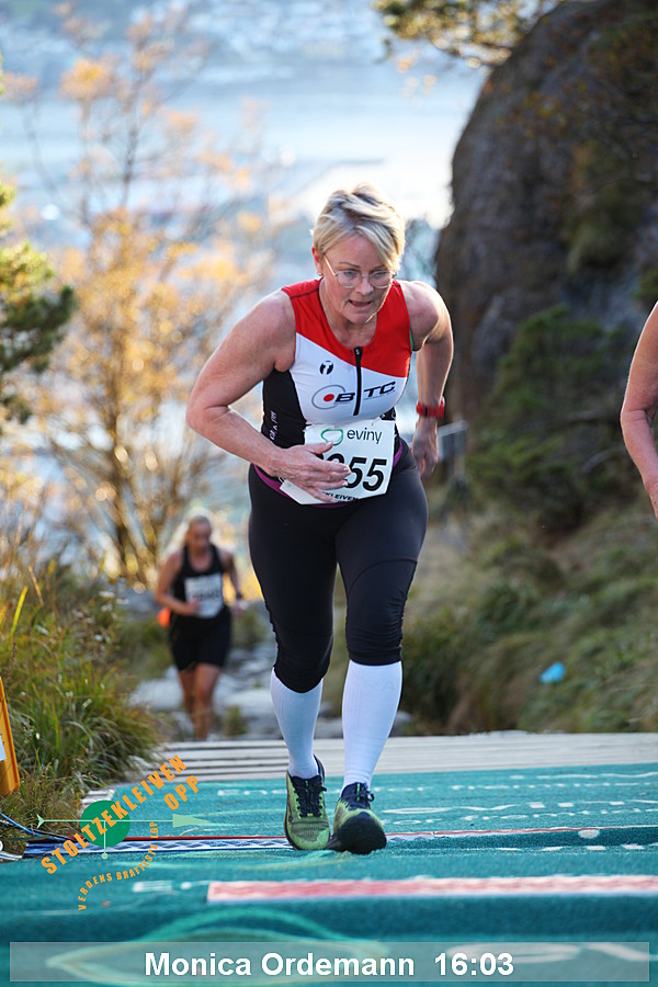 Da Thorbjørn Ludvigsen satte rekord på 7.54 i 2016 hadde han serien 95-99-95-115 og en gjennomsnittlig vertikal hastighet på 2286 meter/time. Kristin Størmer Steira hadde serien 107-96-95-107 da hun satte damerekord på 9:35 i 2013 med en gjennomsnittlig vertikal hastighet på 1884 meter/time. Til sammenligning hadde verdensrekordløpene på en vertikal kilometer (per 1/8/2014) hastighet på henholdsvis 1967 meter/time og 1630 meter/time - men da ble det altså løpt mer enn 3 ganger så langt.