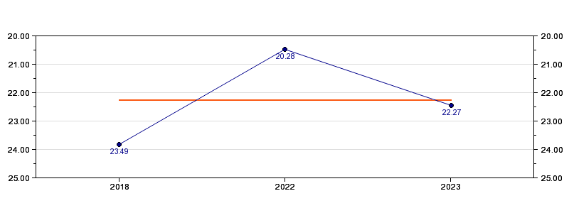 | Forrige tid | 22.27 (2023) |