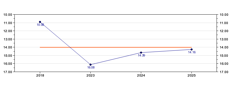 | Forrige tid | 14.16 (2025) |