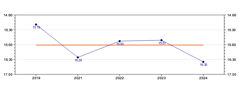| Forrige tid | 16.35 (2024) |