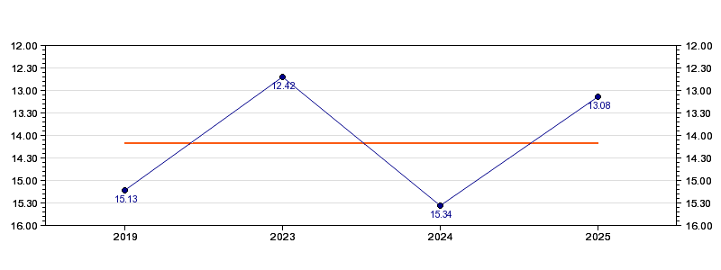 | Forrige tid | 13.08 (2025) |