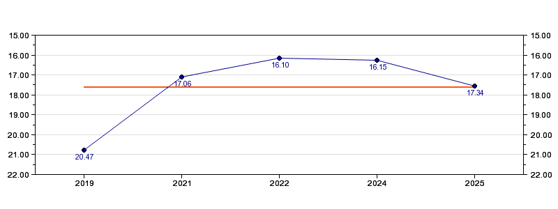 | Forrige tid | 17.34 (2025) |