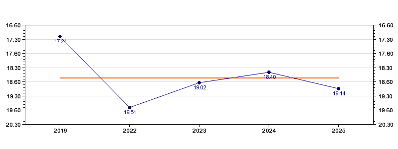 | Antall deltagelser | 5 (i perioden 2019 - 2025) |