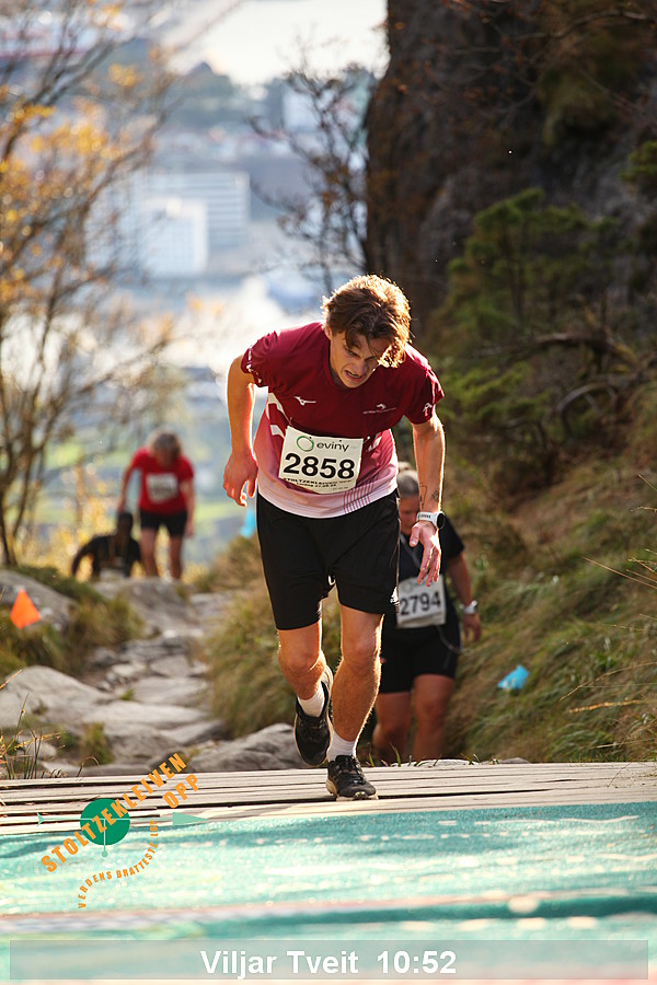 Da Thorbjørn Ludvigsen satte rekord på 7.54 i 2016 hadde han serien 95-99-95-115 og en gjennomsnittlig vertikal hastighet på 2286 meter/time. Kristin Størmer Steira hadde serien 107-96-95-107 da hun satte damerekord på 9:35 i 2013 med en gjennomsnittlig vertikal hastighet på 1884 meter/time. Til sammenligning hadde verdensrekordløpene på en vertikal kilometer (per 1/8/2014) hastighet på henholdsvis 1967 meter/time og 1630 meter/time - men da ble det altså løpt mer enn 3 ganger så langt.