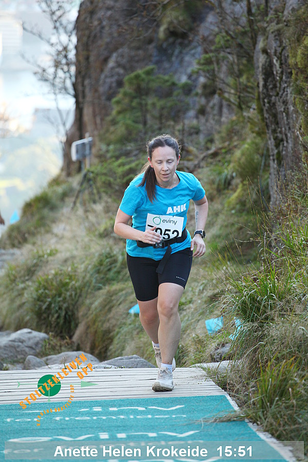 Da Thorbjørn Ludvigsen satte rekord på 7.54 i 2016 hadde han serien 95-99-95-115 og en gjennomsnittlig vertikal hastighet på 2286 meter/time. Kristin Størmer Steira hadde serien 107-96-95-107 da hun satte damerekord på 9:35 i 2013 med en gjennomsnittlig vertikal hastighet på 1884 meter/time. Til sammenligning hadde verdensrekordløpene på en vertikal kilometer (per 1/8/2014) hastighet på henholdsvis 1967 meter/time og 1630 meter/time - men da ble det altså løpt mer enn 3 ganger så langt.