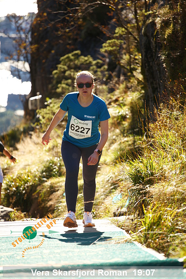Da Thorbjørn Ludvigsen satte rekord på 7.54 i 2016 hadde han serien 95-99-95-115 og en gjennomsnittlig vertikal hastighet på 2286 meter/time. Kristin Størmer Steira hadde serien 107-96-95-107 da hun satte damerekord på 9:35 i 2013 med en gjennomsnittlig vertikal hastighet på 1884 meter/time. Til sammenligning hadde verdensrekordløpene på en vertikal kilometer (per 1/8/2014) hastighet på henholdsvis 1967 meter/time og 1630 meter/time - men da ble det altså løpt mer enn 3 ganger så langt.