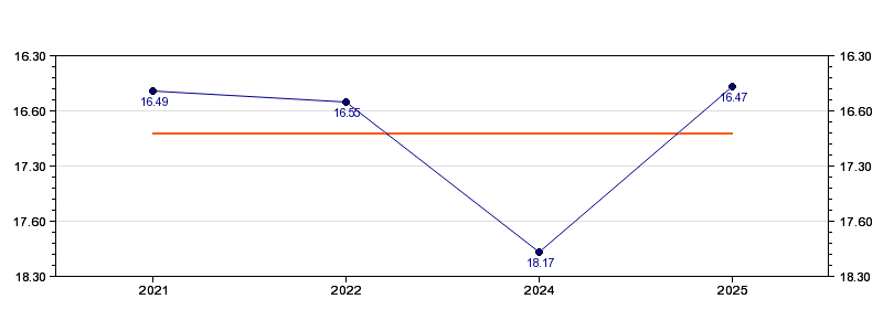 | Forrige tid | 16.47 (2025) |