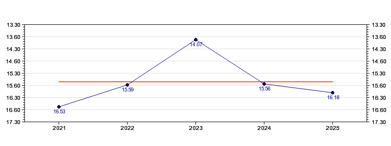 | Forrige tid | 16.18 (2025) |