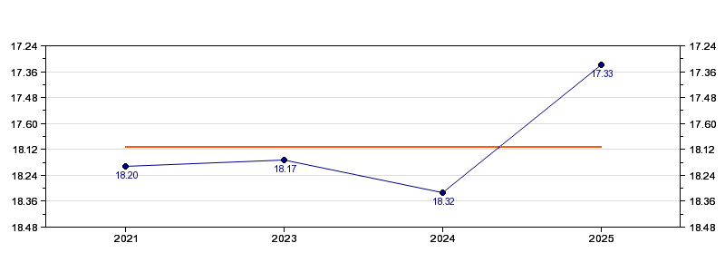 | Forrige tid | 17.33 (2025) |