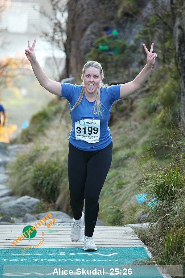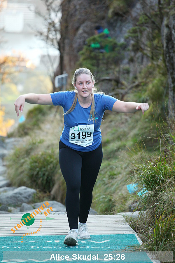 Da Thorbjørn Ludvigsen satte rekord på 7.54 i 2016 hadde han serien 95-99-95-115 og en gjennomsnittlig vertikal hastighet på 2286 meter/time. Kristin Størmer Steira hadde serien 107-96-95-107 da hun satte damerekord på 9:35 i 2013 med en gjennomsnittlig vertikal hastighet på 1884 meter/time. Til sammenligning hadde verdensrekordløpene på en vertikal kilometer (per 1/8/2014) hastighet på henholdsvis 1967 meter/time og 1630 meter/time - men da ble det altså løpt mer enn 3 ganger så langt.