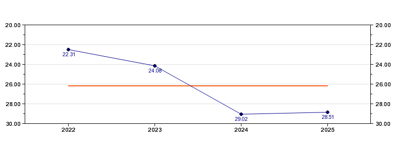 | Forrige tid | 28.51 (2025) |