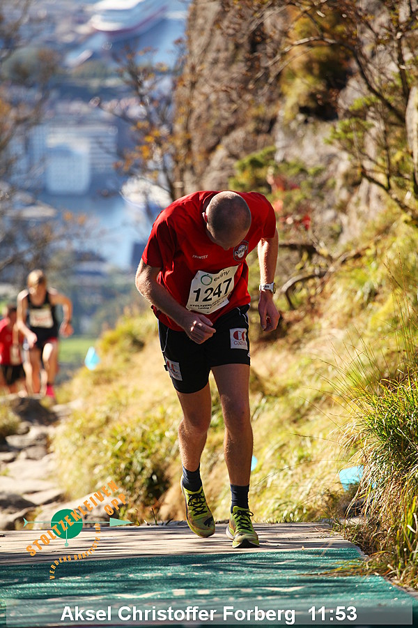 Da Thorbjørn Ludvigsen satte rekord på 7.54 i 2016 hadde han serien 95-99-95-115 og en gjennomsnittlig vertikal hastighet på 2286 meter/time. Kristin Størmer Steira hadde serien 107-96-95-107 da hun satte damerekord på 9:35 i 2013 med en gjennomsnittlig vertikal hastighet på 1884 meter/time. Til sammenligning hadde verdensrekordløpene på en vertikal kilometer (per 1/8/2014) hastighet på henholdsvis 1967 meter/time og 1630 meter/time - men da ble det altså løpt mer enn 3 ganger så langt.