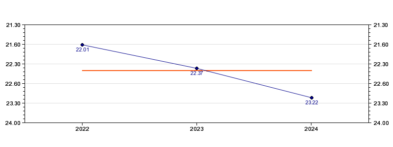 | Forrige tid | 23.22 (2024) |
