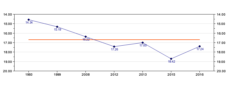 Antall deltagelser7 (i perioden 1993 - 2016)