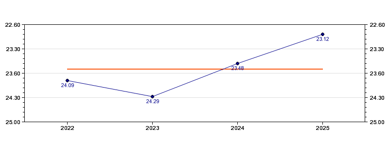 | Personlig rekord | 23.12 (2025) |