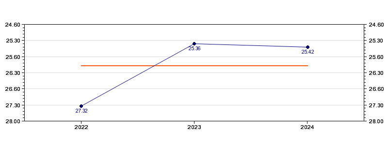 | Forrige tid | 25.42 (2024) |