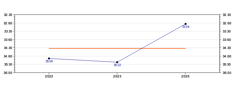 | Forrige tid | 33.04 (2025) |