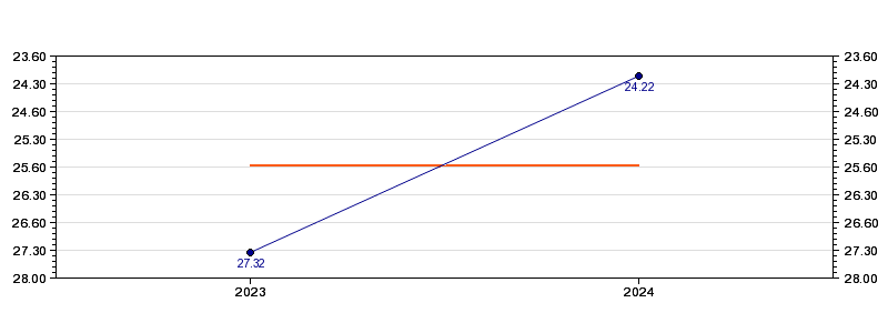 | Forrige tid | 24.22 (2024) |