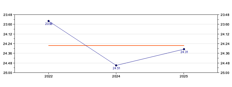 | Forrige tid | 24.31 (2025) |