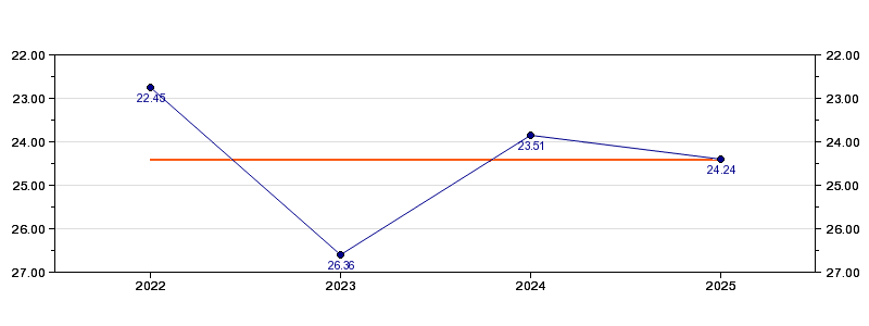 | Forrige tid | 24.24 (2025) |