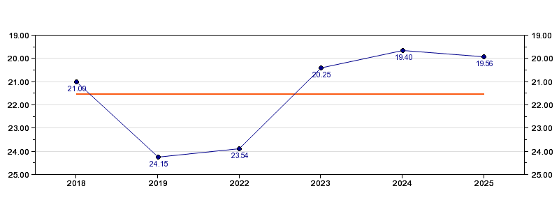 | Antall deltagelser | 6 (i perioden 2018 - 2025) |