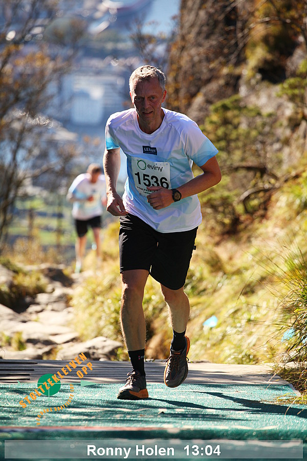 Da Thorbjørn Ludvigsen satte rekord på 7.54 i 2016 hadde han serien 95-99-95-115 og en gjennomsnittlig vertikal hastighet på 2286 meter/time. Kristin Størmer Steira hadde serien 107-96-95-107 da hun satte damerekord på 9:35 i 2013 med en gjennomsnittlig vertikal hastighet på 1884 meter/time. Til sammenligning hadde verdensrekordløpene på en vertikal kilometer (per 1/8/2014) hastighet på henholdsvis 1967 meter/time og 1630 meter/time - men da ble det altså løpt mer enn 3 ganger så langt.