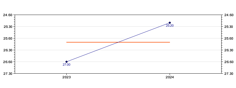 | Forrige tid | 25.20 (2024) |