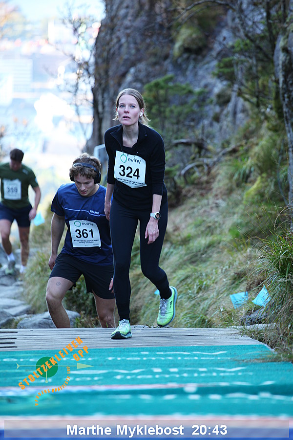 Da Thorbjørn Ludvigsen satte rekord på 7.54 i 2016 hadde han serien 95-99-95-115 og en gjennomsnittlig vertikal hastighet på 2286 meter/time. Kristin Størmer Steira hadde serien 107-96-95-107 da hun satte damerekord på 9:35 i 2013 med en gjennomsnittlig vertikal hastighet på 1884 meter/time. Til sammenligning hadde verdensrekordløpene på en vertikal kilometer (per 1/8/2014) hastighet på henholdsvis 1967 meter/time og 1630 meter/time - men da ble det altså løpt mer enn 3 ganger så langt.