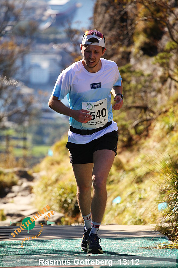 Da Thorbjørn Ludvigsen satte rekord på 7.54 i 2016 hadde han serien 95-99-95-115 og en gjennomsnittlig vertikal hastighet på 2286 meter/time. Kristin Størmer Steira hadde serien 107-96-95-107 da hun satte damerekord på 9:35 i 2013 med en gjennomsnittlig vertikal hastighet på 1884 meter/time. Til sammenligning hadde verdensrekordløpene på en vertikal kilometer (per 1/8/2014) hastighet på henholdsvis 1967 meter/time og 1630 meter/time - men da ble det altså løpt mer enn 3 ganger så langt.