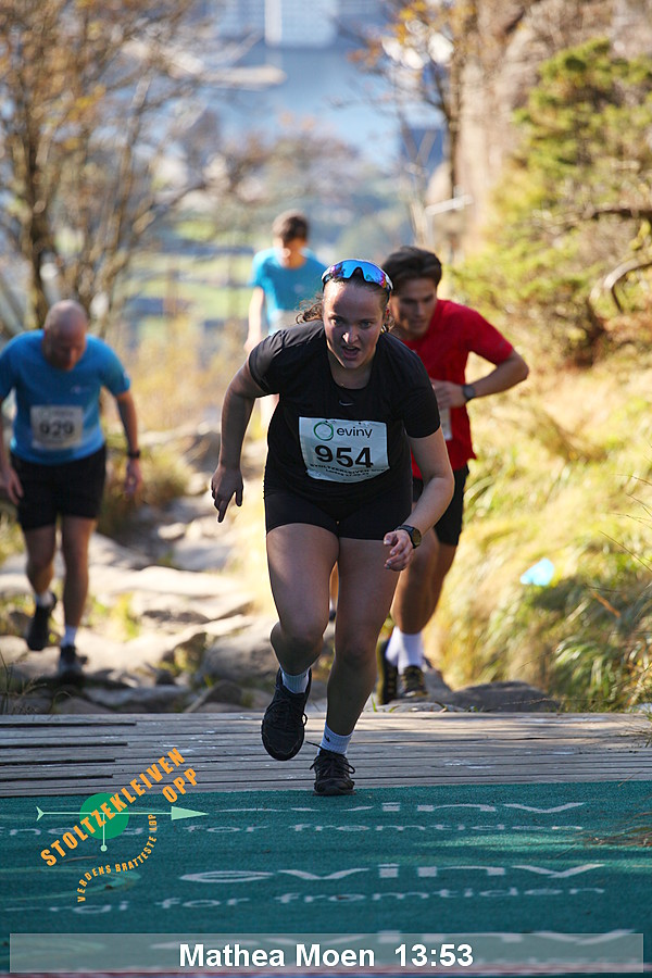 Da Thorbjørn Ludvigsen satte rekord på 7.54 i 2016 hadde han serien 95-99-95-115 og en gjennomsnittlig vertikal hastighet på 2286 meter/time. Kristin Størmer Steira hadde serien 107-96-95-107 da hun satte damerekord på 9:35 i 2013 med en gjennomsnittlig vertikal hastighet på 1884 meter/time. Til sammenligning hadde verdensrekordløpene på en vertikal kilometer (per 1/8/2014) hastighet på henholdsvis 1967 meter/time og 1630 meter/time - men da ble det altså løpt mer enn 3 ganger så langt.