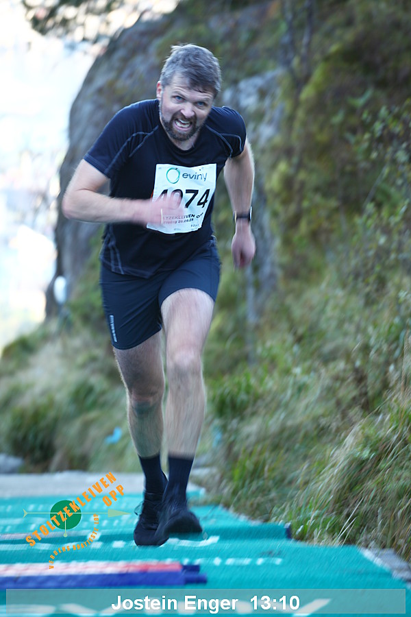 Da Thorbjørn Ludvigsen satte rekord på 7.54 i 2016 hadde han serien 95-99-95-115 og en gjennomsnittlig vertikal hastighet på 2286 meter/time. Kristin Størmer Steira hadde serien 107-96-95-107 da hun satte damerekord på 9:35 i 2013 med en gjennomsnittlig vertikal hastighet på 1884 meter/time. Til sammenligning hadde verdensrekordløpene på en vertikal kilometer (per 1/8/2014) hastighet på henholdsvis 1967 meter/time og 1630 meter/time - men da ble det altså løpt mer enn 3 ganger så langt.