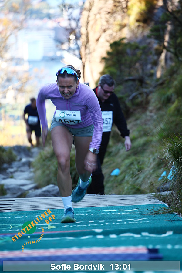 Da Thorbjørn Ludvigsen satte rekord på 7.54 i 2016 hadde han serien 95-99-95-115 og en gjennomsnittlig vertikal hastighet på 2286 meter/time. Kristin Størmer Steira hadde serien 107-96-95-107 da hun satte damerekord på 9:35 i 2013 med en gjennomsnittlig vertikal hastighet på 1884 meter/time. Til sammenligning hadde verdensrekordløpene på en vertikal kilometer (per 1/8/2014) hastighet på henholdsvis 1967 meter/time og 1630 meter/time - men da ble det altså løpt mer enn 3 ganger så langt.