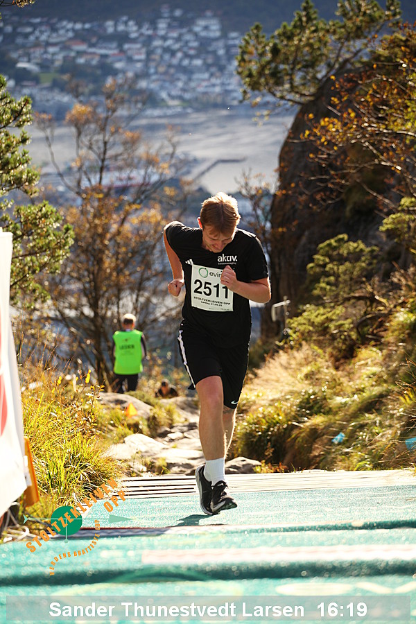 Da Thorbjørn Ludvigsen satte rekord på 7.54 i 2016 hadde han serien 95-99-95-115 og en gjennomsnittlig vertikal hastighet på 2286 meter/time. Kristin Størmer Steira hadde serien 107-96-95-107 da hun satte damerekord på 9:35 i 2013 med en gjennomsnittlig vertikal hastighet på 1884 meter/time. Til sammenligning hadde verdensrekordløpene på en vertikal kilometer (per 1/8/2014) hastighet på henholdsvis 1967 meter/time og 1630 meter/time - men da ble det altså løpt mer enn 3 ganger så langt.