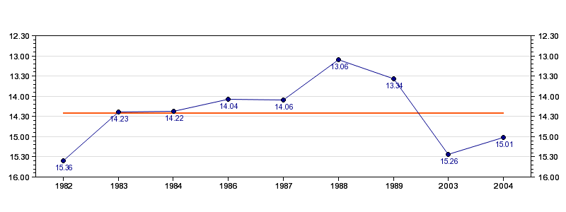 Antall deltagelser9 (i perioden 1982 - 2004)