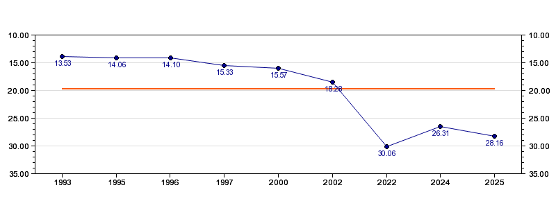 | Antall deltagelser | 9 (i perioden 1993 - 2025) |