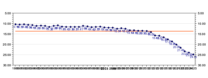Antall deltagelser43 (i perioden 1980 - 2025)
