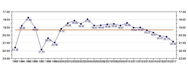 Antall deltagelser25 (i perioden 1993 - 2017)